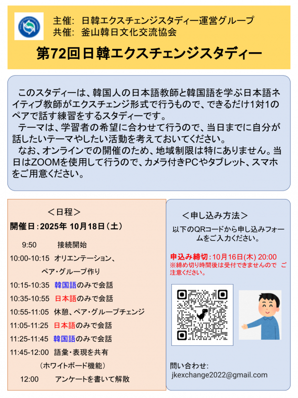 <第72回日韓エクスチェンジスタディー オンライン開催のお知らせ>
